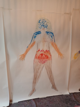 Bei der Körperbildarbeit wird ein eigenes lebensgroßes Körperbild erstellt, auf Basis einer vorangegangenen Meditation und einer Körperumrisszeichnung. Die innerlich entstandenen Bilder werden auf das Papier gestaltet.